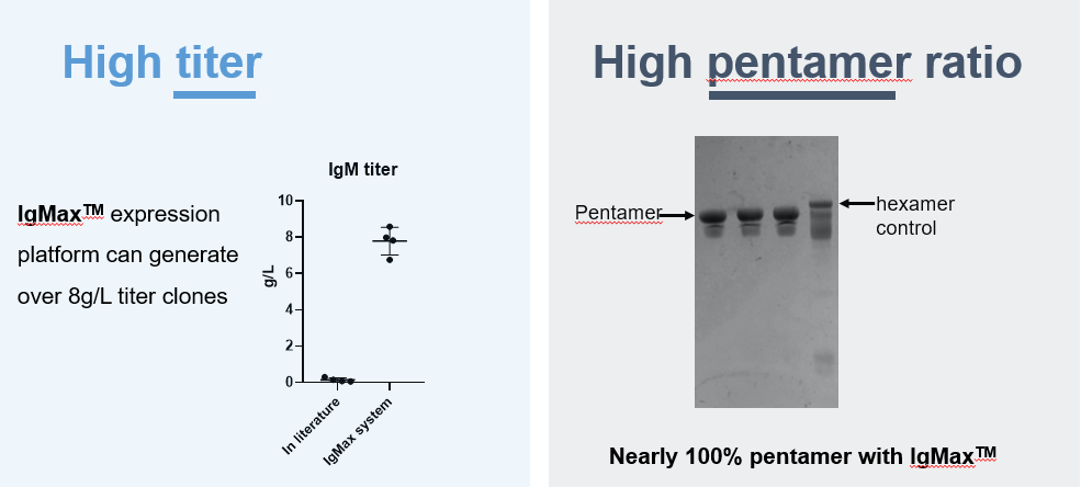 在IgM平台和鼻喷制剂平台的加持下,开云(中国)Kaiyun·官方网站-登录入口成功完成新冠IgM鼻喷制剂产品的CMC开发。开云(中国)Kaiyun·官方网站-登录入口IgM平台具有高产量特征,经改良的细胞株产量最高可达8g/L,并且生产的五聚体(IgM)比例可高达100%,几乎无六聚体产生,减少工艺开发难度,助力新冠IgM鼻喷制剂的高质量研发。