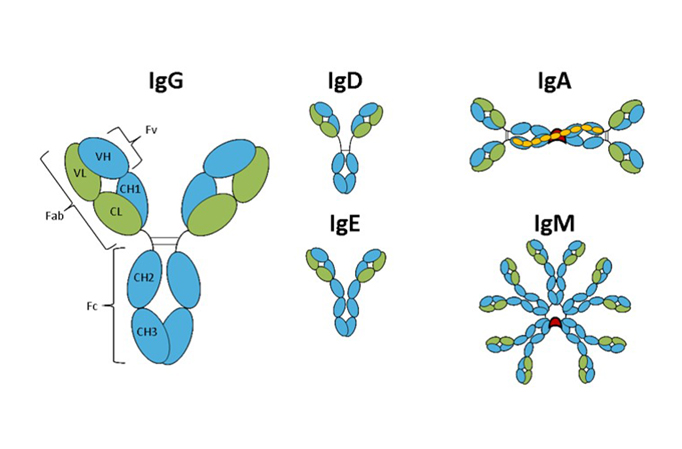 人体有lgG、lgD、lgE、lgA、lgM 5种抗体,已上市的治疗产品主要集中在lgG 这一种类型。国际上越来越多科研者在开发除lgG以外的抗体,例如lgA(二聚体)和lgM(五聚体)这类多价抗体,因其综合效价大大增强。