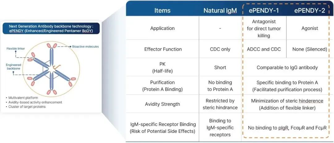 IMBiologics作为韩国唯一的IgM抗体研发公司,开发了下一代的IgM分子构型(已获专利授权):ePENDY®平台