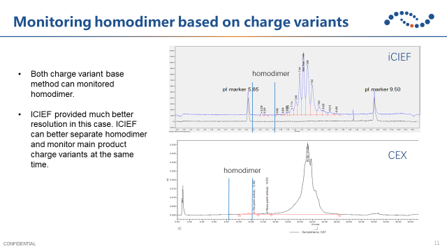 非对称性抗体通过两边半抗分别识别不同靶点来实现双特异性,但容易出现重链和轻链错配的风险。分子设计时通常会在结构上有防止错配的措施,这就要求我们对错配的产物进行监控。错配产物在分子量上的差异可使用毛细管凝胶电泳或者体积排阻色谱进行监控;错配产物在电荷上的差异可使用毛细管等点聚焦或者离子交换色谱进行监控;错配产物在疏水性上的差异可使用疏水作用色谱或者反向色谱进行监控。