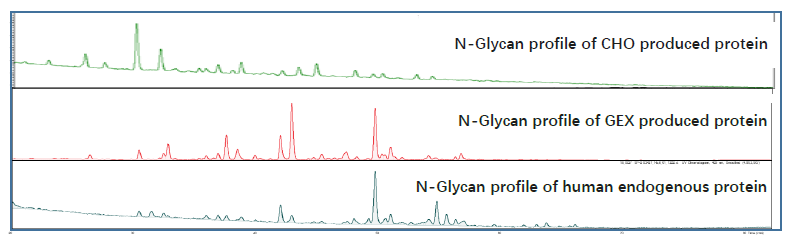 汉腾独家GlycoExpress人类髓系来源细胞系,专门用于表达困难的糖蛋白。在GPCR类、血液因子、复杂多聚物等重组蛋白表达中,具有更高的产量和与人类天然蛋白更相似的糖谱。