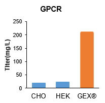 例如,在表达G 蛋白偶联受体 GPCR 的胞外结构域时,GEX® 细胞系的表达量相比传统的 CHO-K1 细胞系可提升10倍之多。