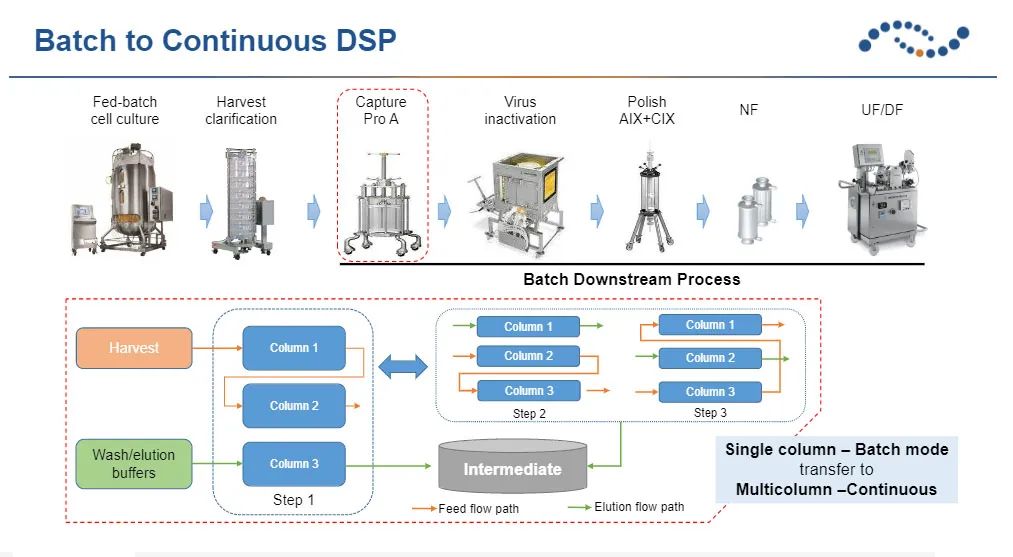因应细胞培养表达量大幅提升后而对下游纯化所带来的压力, 开云(中国)Kaiyun·官方网站-登录入口以亲和多柱层析的先进技术来提高填料使用效率。由于单柱亲和柱会有样品流穿的问题, 因此填料的使用效率往往都只有40%以下, 而多柱联用可把填料的使用效率提升至90%以上, 进而显著的降低填料使用量。与传统的批次纯化方式相比, 多柱连续层析技术可让填料使用量减少高达80%。